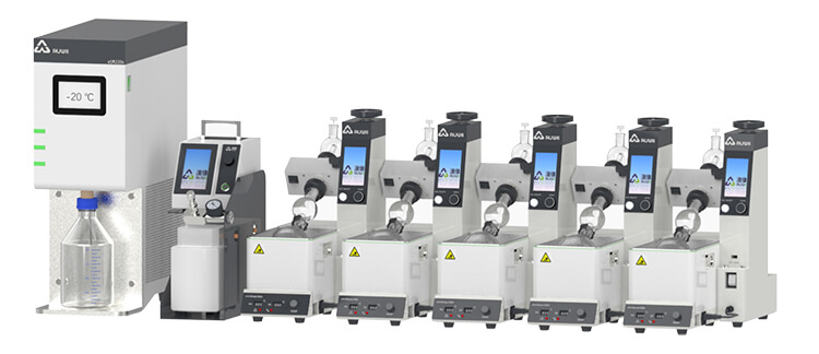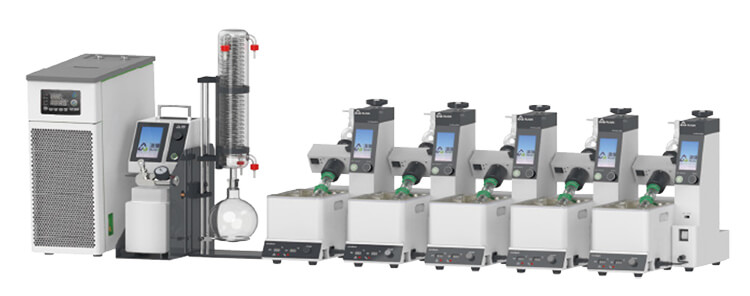 陣列旋轉(zhuǎn)蒸發(fā)儀 陣列旋轉(zhuǎn)蒸發(fā)儀可以搭載六個 mini 旋轉(zhuǎn)蒸發(fā)儀單元,既可以滿足同時使用,也支持獨(dú)立操作,可以獨(dú)立 的進(jìn)行溫度設(shè)置、轉(zhuǎn)速調(diào)整、釋放真空等操作,不干擾其他旋轉(zhuǎn)蒸發(fā)儀單元的正常工作。